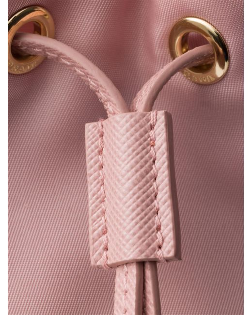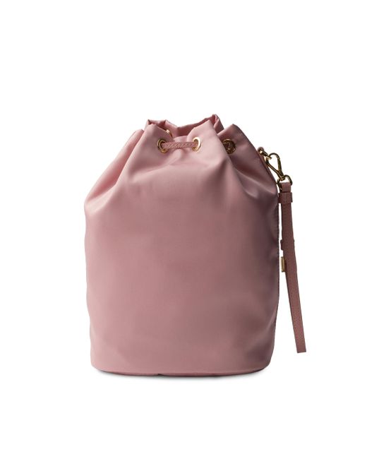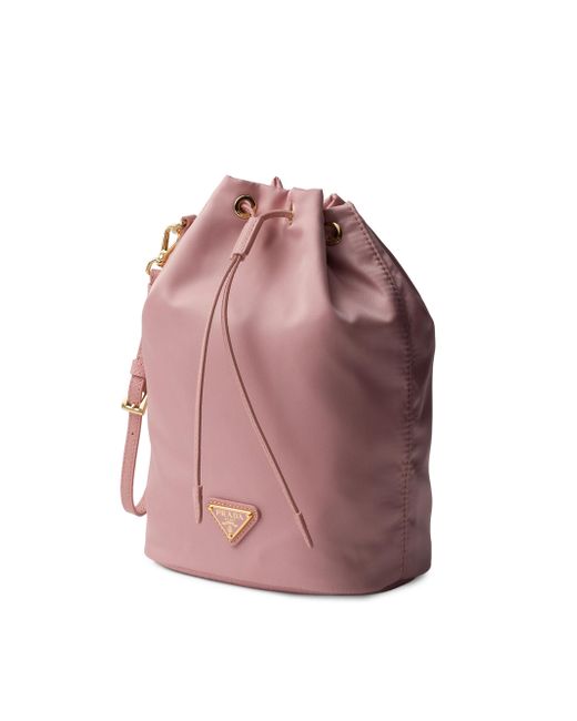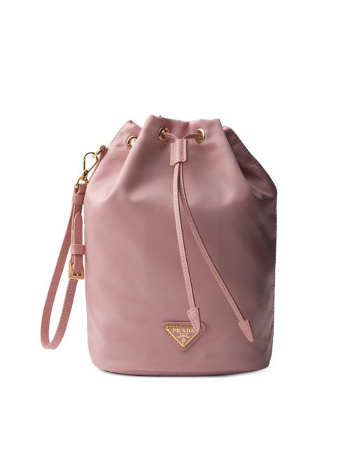 Made of Prada's innovative re-nylon fabric produced from recycled plastic materials collected in the ocean, this drawstring pouch stands out for its practical attitude highlighted by its removable leather wristlet. Drawstring closure Enameled metal triangle logo Removable leather wristlet Re-nylon lining Imported 15.5 W x 23 H x 10 L (cm) / 6'' W x 9'' H x 4'' L. Lsd Handbags - Prada Handbags Access > Prada > Saks Fifth Avenue. Prada. Color: Pink Gold.