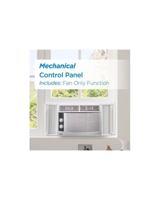 The Black+Decker 5,000 Btu Window Air Conditioner offers a cooling solution designed for optimum comfort and efficiency. This window mounted Ac is a perfect addition to your home, offering a powerful cooling capacity that can efficiently cool rooms up to 150 square feet. With an 11 Ceer rating, this air conditioner is engineered for energy efficiency and, utilizing R-32 refrigerant to minimize environmental impact. The Black and Decker window air conditioner utilizes simple mechanical control operation to easily adjust your settings. This window Ac unit features two cooling and two fan speeds along with a temperature control dial with 7 temperature settings that can be adjusted to suit your preferences. Installation is made simple with the included hardware and installation kit, accommodating windows that measure 23 to 34 inches in width and as low as 14.5 inches in height.