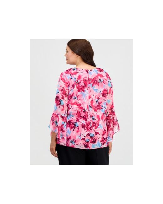 Kasper ticks all the boxes with this striking plus size top designed with beautifully ruffled 3/4-sleeves and a gorgeous print.