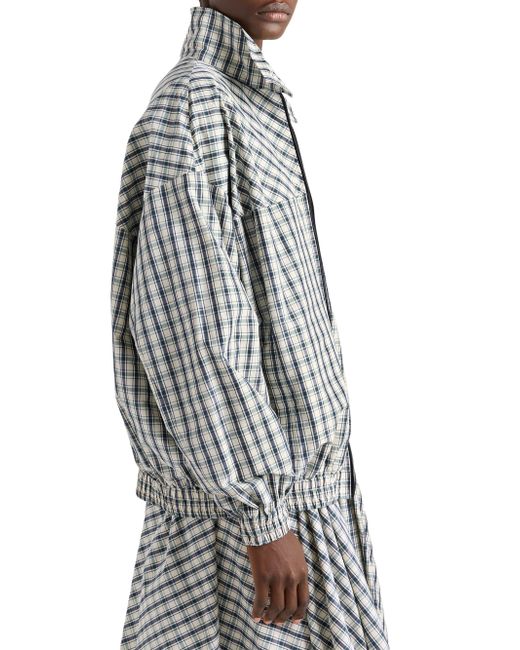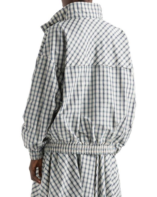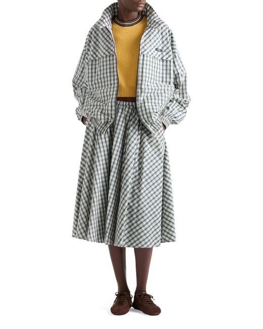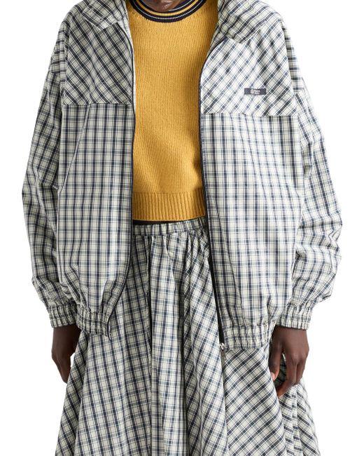 Checked chambray blouson jacket. Stand-up collar Long sleeves Elasticized cuff Zipper closure Welt zipper pockets Jersey lining Elasticized hem Sartorial logo label on the front Buttons on the collar Front and back yoke with flap Small zipper pocket on the front left, under the yoke 52% cotton, 48% polyamide Imported. Lsd Rtw - Prada Rtw > Prada > Saks Fifth Avenue. Prada. Color: Beige Multi. Size: 6.