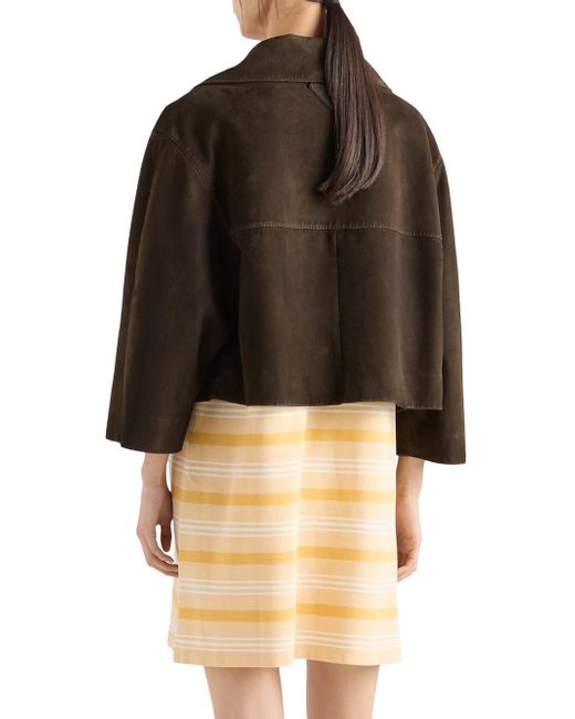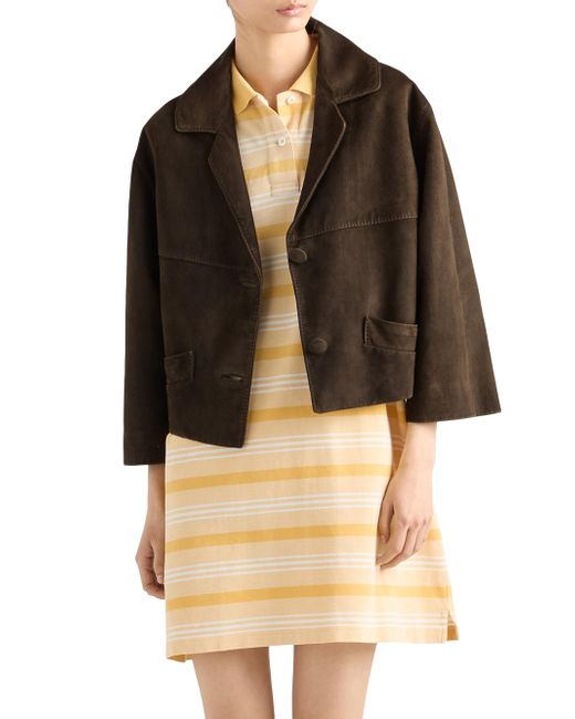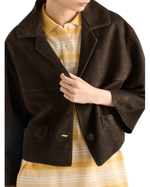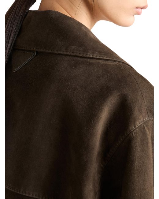 Lined garment Regular fit Center button closure Notch lapel Straight sleeves Wide welt pockets Leather triangle logo on the back Vintage treatment 100% Lamb leather Imported. Lsd Rtw - Prada Rtw > Prada > Saks Fifth Avenue. Prada. Color: Green. Size: 2.