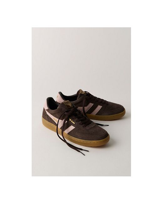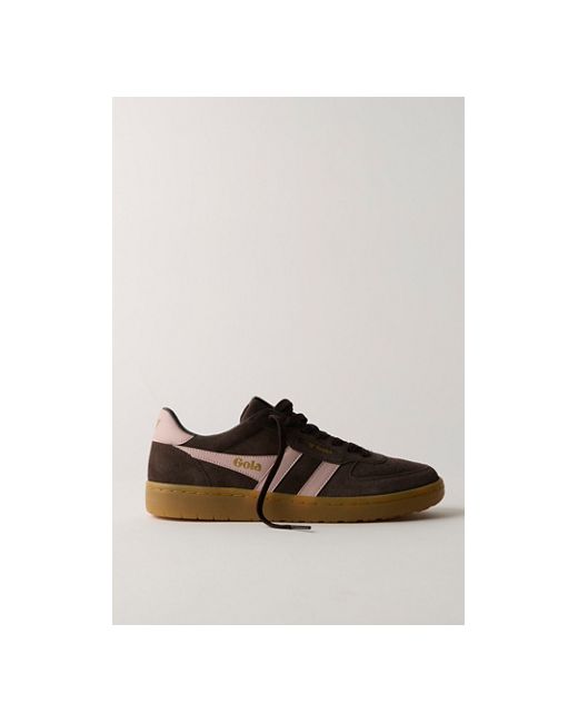 Tonal to the max, these all-suede sneakers from Gola are featured in a low-top, tapered silhouette with side-stripe detailing and a contrasting gum rubber outsole. **Features:** Low-top style, suede uppers, leather accents, side stripes, perforated toe box, gum rubber outsole, lace-up closure **Why We Gola Hawk Suede Sneakers at Free People in Mocha/Chalk Pink/Gum, Size: US 8