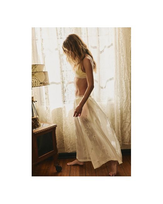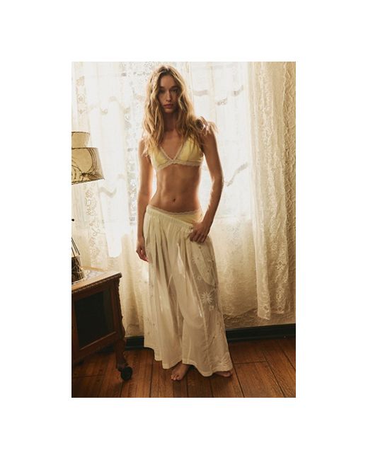 Sheer in sweeping cotton, these lightweight house pants from Intimately feature a comfortable, ultra-wide-leg silhouette, pleating throughout for added shape, and contrast floral embroidery for a femme touch to this weekend-ready style. * Sheer cotton fabrication * Pull-on, wide-leg lounge pants * Elasticated waistband with ruffle trim * Side pockets Moon Glow House Pants by Intimately at Free People in Tofu, Size: XS
