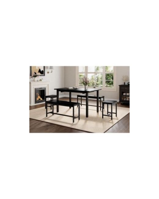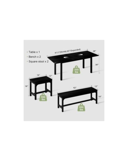 5-Piece Extendable Dining Table Set for 4-8 People 63 Inch Kitchen with 2 Benches Stools