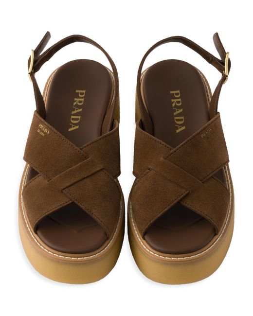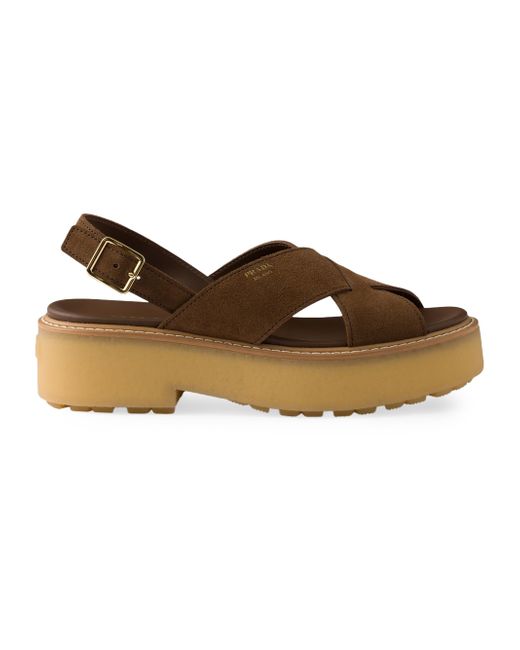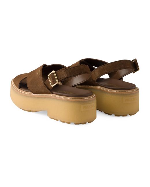 Upper with ankle strap and buckle Screen-printed logo Monoblock rubber sole, 55 mm / 2.2'', with hot-stamped logo Imported 100% Calf Leather. Lsd Rtw - Prada Rtw > Prada > Saks Fifth Avenue. Prada. Color: Brown. Size: 6.