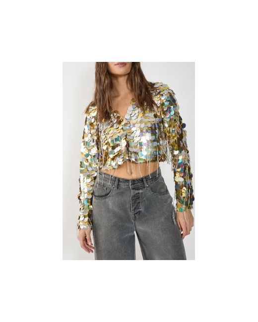 Make a dazzling entrance in this show-stopping Disc Tassel Jacket from NastyGal's Icons collection. The eye-catching sequin embellishment catches and reflects light with every movement, whilst the playful tassel trim adds dynamic texture and movement.