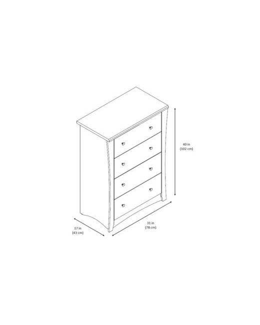 The perfect storage solution to organize your child's bedroom, the Storkcraft Crescent 4 Drawer Chest combines impeccable style and functionality in an affordable package. Sleek lines, elegant curves and oval, metal knobs accentuate modern flare, as this versatile chest is designed to coordinate with any home furniture and will grow with your child well into their adolescent years. Featuring four spacious drawers on euro-glide metal tracks and safety stops, this chest can securely store all your child's clothes, toys and other belongings. Fastened with German cam locks and finished with high-quality laminate in a selection of rich colors and finishes, this chest is durable and resistant against dirt or accidental spills. The Storkcraft Crescent 4 Drawer Chest is stringently tested to meet or exceed all applicable Consumer Products Safety Commission (Cpsc) and American Society for Testing and Materials (Astm) safety standards, in addition to federal anti-tipping standards.