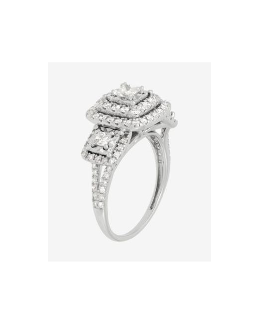 Elevated shine distinguishes this Macy's engagement ring in 10k white gold featuring a princess-cut center stone for bold sparkle. Complementary diamonds add depth, while sizeable design ensures adjustable wear.