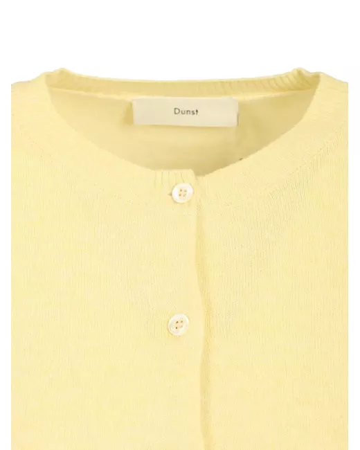 yellow crew neck button closure ribbed hem ribbed cuffs