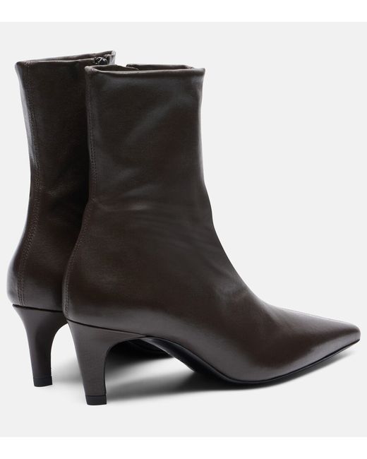 Upper: lamb leather. Lining: leather. Sole: leather insole and sole. Toe shape: pointed toe. Made in Portugal. Includes: shoe box, dust bag. Designer color name: Brown. Closure: zipped side.