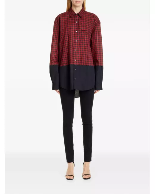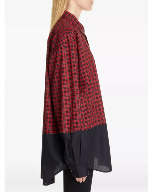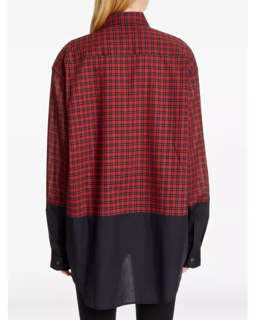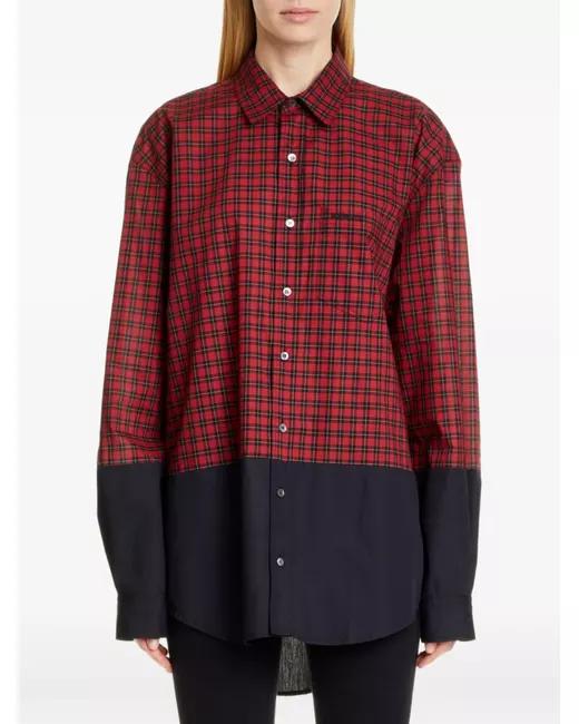 red check pattern panel detail button fastening long sleeves chest pocket