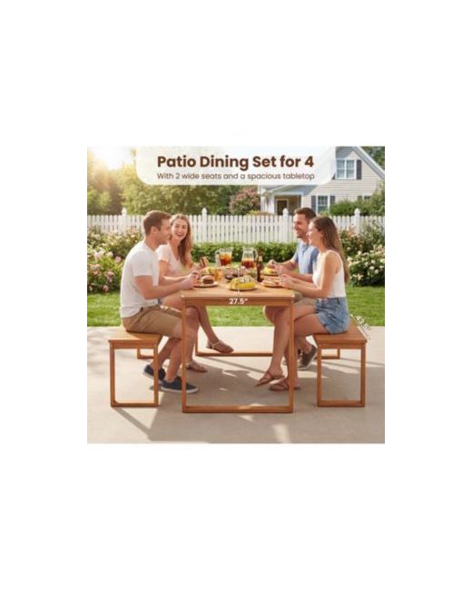 Enjoy casual outdoor dining with this 3-piece acacia wood picnic set, featuring a sturdy outdoor dining table and two matching benches designed to seat up to four people comfortably. Crafted from durable acacia wood, the set offers natural warmth and strength, making it ideal for patios, gardens, or backyard spaces. The benches provide ample seating for family meals or gatherings, while the spacious table accommodates food, drinks, and activities. With its simple, functional design and outdoor-ready construction, this picnic set combines practicality, durability, and timeless style for everyday outdoor enjoyment.