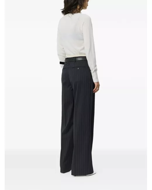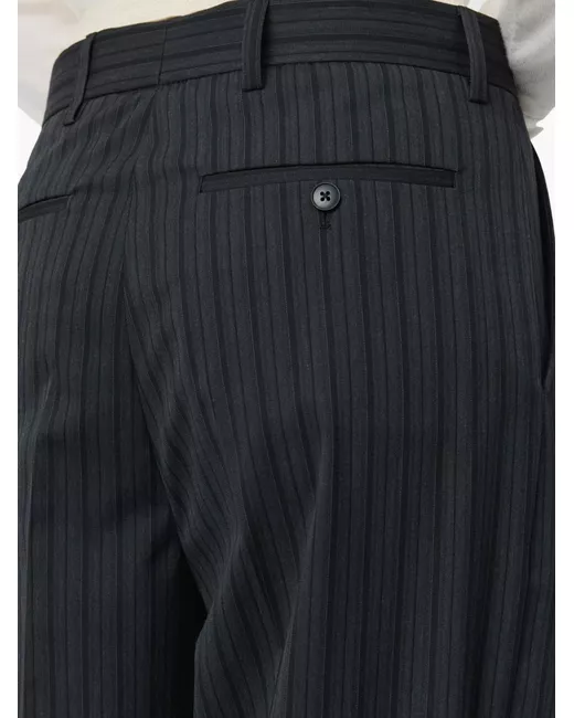 grey stripe pattern button fastening belt loops pleated front rear welt pocket