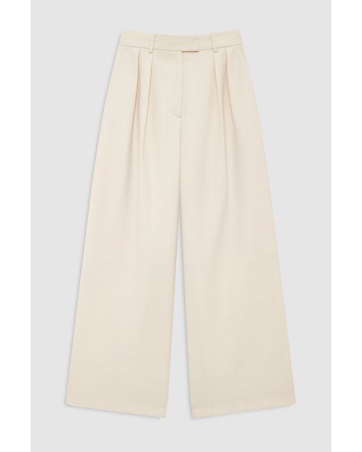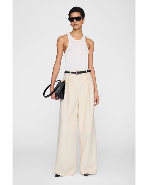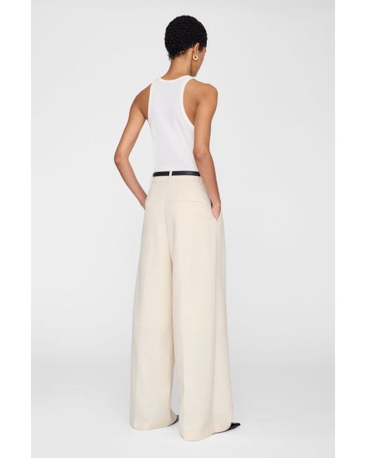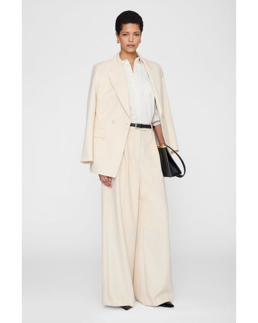A full-length trouser made from a midweight wool blend suiting fabrication. - Wool blend - Fully lined - High rise - Extended tab and zip-front closure - Double pleat detailing - Dropped crotch - Ultra-wide leg - Full-length inseam - One back welt pocket ANINE BING Lou Trouser Pants in Ecru