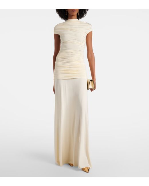Material: 90% viscose, 10% elastane. Care instructions: dry clean. Made in China. Designer color name: Yellow. Lining: 90% viscose, 10% elastane. Self-tie neck.