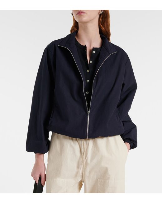 Material: 100% cotton. Care instructions: machine wash cold. Made in the USA. Designer color name: Nuit (28795-B). Closure: two-way zipped front. Hem: elasticated. Cuff: elasticated. Cotton. Pockets: side welt pockets.