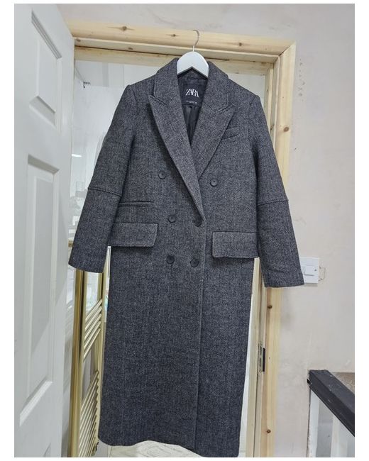 This Zara Grey & Black Harringbone Pattern Wool Double Breasted Longline Coat is a classic and versatile piece for women. Made from heavyweight wool with a polyester lining, it features a stylish herringbone pattern and a collared neckline. The double-breasted button closure and long sleeves make it suitable for various occasions from casual to formal, perfect for the winter season. This coat is a wardrobe staple for those looking for a timeless and sophisticated outerwear option. Legth 115cm pit to pit 52cm