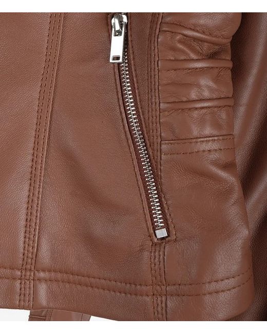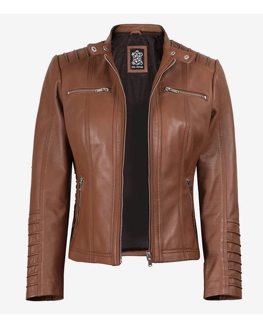 Women's Brown Cognac Leather Jacket With Removable Hood S
