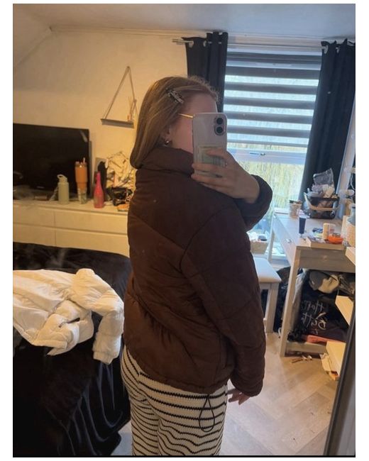 This Brown North Face Puffer Coat in size small for women is a stylish and practical choice for winter. Made from polyester with a soft polyester lining, it provides excellent insulation with its down insulation material. The mid-length jacket features the brand's logo as accents and has a regular fit, perfect for casual occasions. With a machine washable design, this coat is ideal for outdoor activities, making it a versatile addition to any woman's wardrobe.
