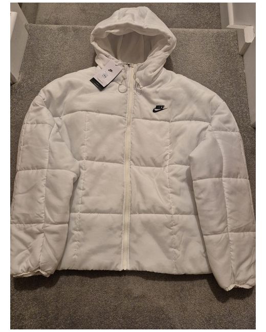 This Nike Puffer Jacket in women's XL size is a stylish and practical choice for the winter season. The white polyester outer shell and lining give it a sleek and modern look, perfect for casual occasions. The logo accents add a touch of sporty flair, while the machine washable garment care makes it easy to keep clean and fresh. With its puffer style and polyester materials, this Nike jacket combines comfort and style for a versatile outerwear option.