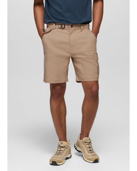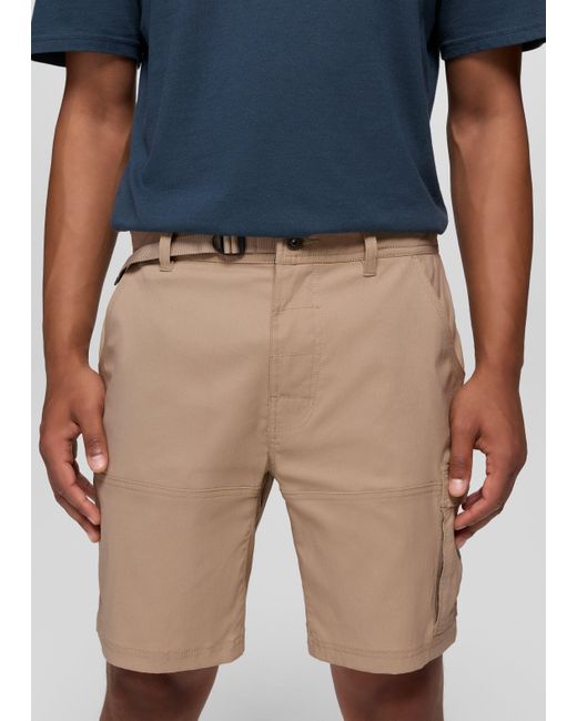 A bestselling short constructed in durable Stretch Zion™ material for rugged versatility in the outdoors. Take on the outdoors in confidence in these bestselling shorts crafted from Stretch Zion™ fabric for lasting durability and easy range of movement. The material is abrasion-resistant, offers a UPF 50+ rating for sun protection, and wicks away moisture to keep up with sweaty hikes and climbs. The prAna signature adjustable webbing waistband adds security to the fit. A zipper cargo pocket lets you safely stash your phone and keys, so you don't have to worry about them in the midst of the action. We recommend these for our Zion Short II lovers. | Mens prAna Stretch Zion™ Short in Beige / Khaki, Size 33