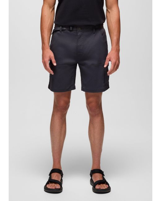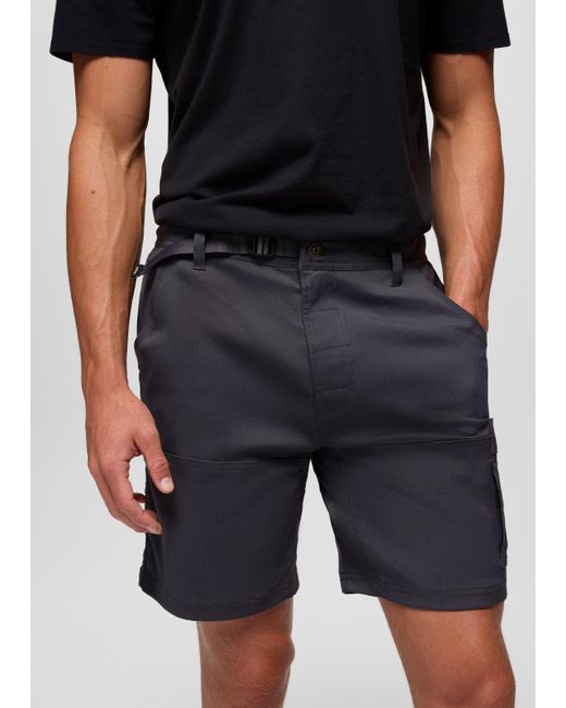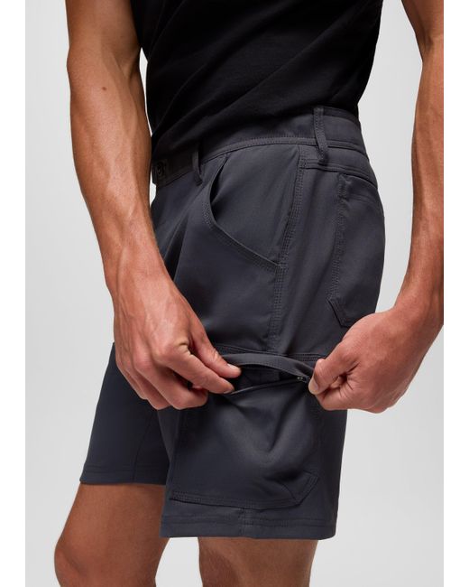 A bestselling short constructed in durable Stretch Zion™ material for rugged versatility in the outdoors. Take on the outdoors in confidence in these bestselling shorts crafted from Stretch Zion™ fabric for lasting durability and easy range of movement. The material is abrasion-resistant, offers a UPF 50+ rating for sun protection, and wicks away moisture to keep up with sweaty hikes and climbs. The prAna signature adjustable webbing waistband adds security to the fit. A zipper cargo pocket lets you safely stash your phone and keys, so you don't have to worry about them in the midst of the action. We recommend these for our Zion Short II lovers. | Mens prAna Stretch Zion™ Short in Black, Size 28