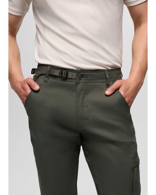 A comfortable pant featuring a timeless standard-straight fit and durable Stretch Zion™ fabric. From the office to the outdoors, these versatile pants are ready to take you through the day in Stretch Zion™ fabric, giving you the ideal mix of durability and comfort. They feature a standard-straight fit and a ventilated inseam gusset for extra range of movement. The fabric is abrasion-resistant, features a water-resistant coating, and wicks away moisture as you move for lasting freshness. | Mens prAna Stretch Zion™ Standard Pant in Dark Green, Size 28