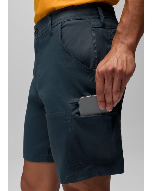 A bestselling short constructed in durable Stretch Zion™ material for rugged versatility in the outdoors. Take on the outdoors in confidence in these bestselling shorts crafted from Stretch Zion™ fabric for lasting durability and easy range of movement. The material is abrasion-resistant, offers a UPF 50+ rating for sun protection, and wicks away moisture to keep up with sweaty hikes and climbs. The prAna signature adjustable webbing waistband adds security to the fit. A zipper cargo pocket lets you safely stash your phone and keys, so you don't have to worry about them in the midst of the action. We recommend these for our Zion Short II lovers. | Mens prAna Stretch Zion™ Short in Blue, Size 30