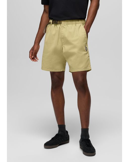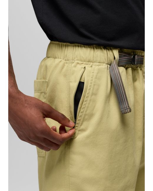 Climb-ready shorts designed with a built-in adjustable webbing belt and breathable organic cotton that delivers performance-level durability. Breathable organic cotton keeps these shorts comfortable whether you're heel hooking a hold or heading out for a stroll. Our signature webbed belt lets you adjust the fit for a secure feel, and two front stash pockets make it easy to carry your keys and phone. | Mens prAna Durado Short in , Size Large