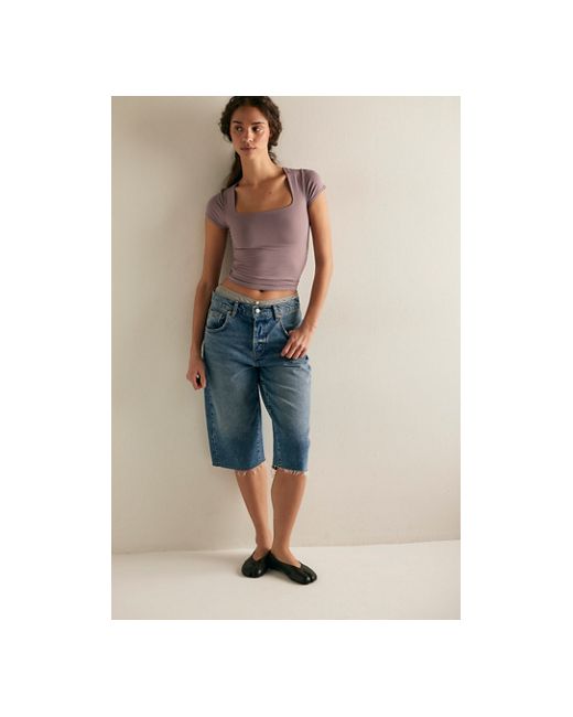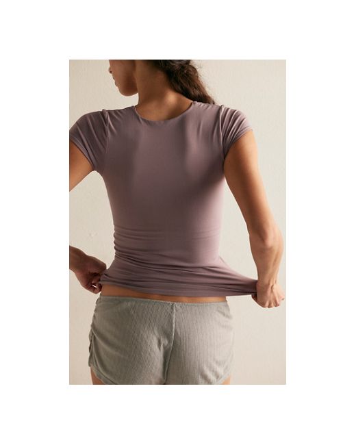 A new addition to your favorite seamless collection, this ultra-soft tee is featured in a slim-fitting silhouette with a square neckline and cap-inspired sleeves. **Fit:** Slimmer silhouette, hip-length **Features:** Buttery soft fabrication with a stretchy feel, seamless design, square neckline, cap-inspired sleeves, lining at bust **Why We Clean Lines Sunfade Baby Tee by Intimately at Free People in Purple Dove, Size: XS/S