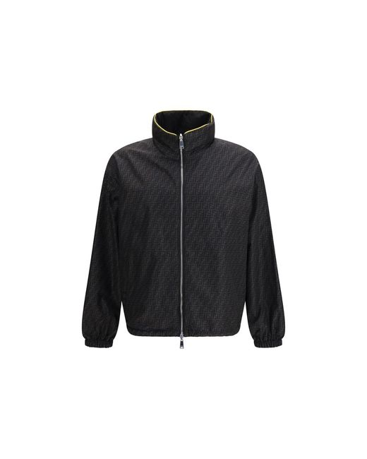 The FF jacquard zipped reversible Windbreaker by Fendi is a versatile and statement-making piece. Featuring an all-over FF jacquard pattern with geometric embroidery, it is designed with a drawstring hood, front zip fastening, and elasticated hems for a comfortable fit. The reversible construction offers two different looks in one, blending functionality with signature style. Season: SS26 Fit: Regular Composition: OUTER 100% Polyamide INNER 100% Polyester
