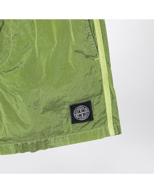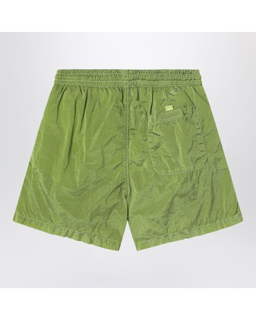 Stone Island swim shorts in lime yellow nylon featuring two side pockets one rear patch pocket with velcro Compass logo patch on the front and elasticated waistband.