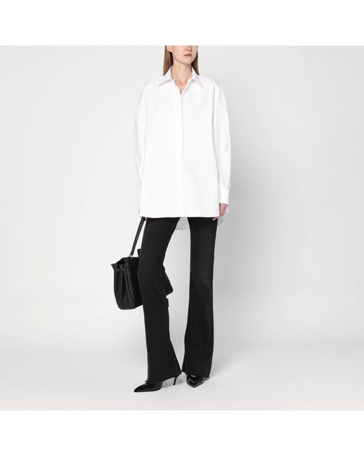 Wide Givenchy white cotton shirt characterized by hidden front buttoning long sleeves with buttoned cuffs and a curved hem that is longer at the back.