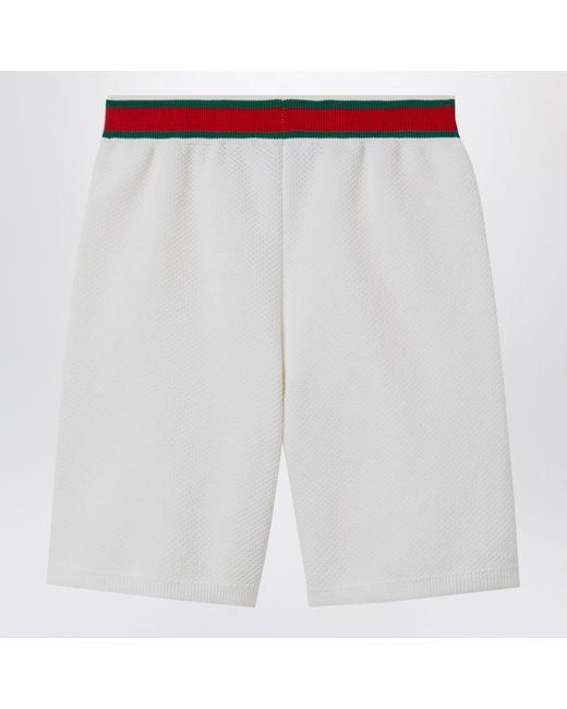 Shorts by Gucci in white cotton blend characterized by an elasticated waist with greenredgreen Web ribbon tone-on-tone logo lettering embroidery and ribbed edges.
