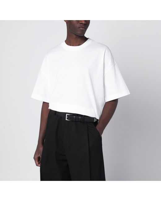 Prada belt in black Saffiano leather• enamelled metal triangle logo• buckle fastening