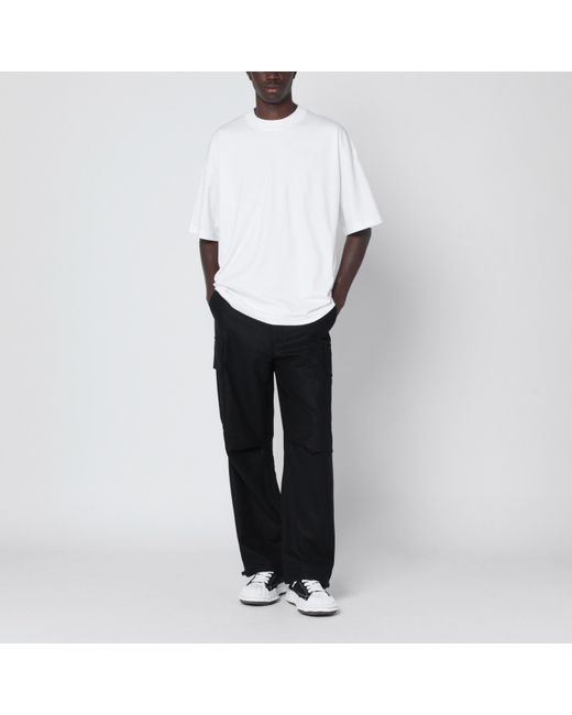DARKPARK black wool cargo pants characterized by a front closure with zip and button belt loops pleated details on the knees two side welt pockets two flap pockets on the back two cargo pockets with flap on the side rear logo patch and drawstring at the leg opening.