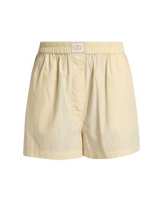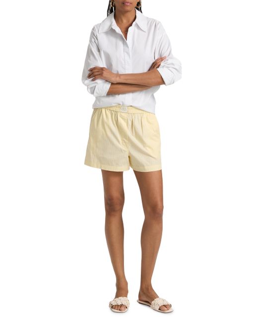 The Sarah boxer-style shorts from SIMKHAI, crafted of cotton poplin, feature a classic striped design and an embroidered logo at the waistband. Elasticized waistband Side slip pockets Pulls on 100% cotton Dry clean Imported SIZE & FIT Rise: about 12.5" Inseam: about 3" Leg opening: about28" Model measurements: 5'10" tall Model is wearing a US size Small. Contemporary Sportswear - Workshop > Simkhai > Saks Fifth Avenue. SIMKHAI. Color: Buttercream Stripe. Size: Small.