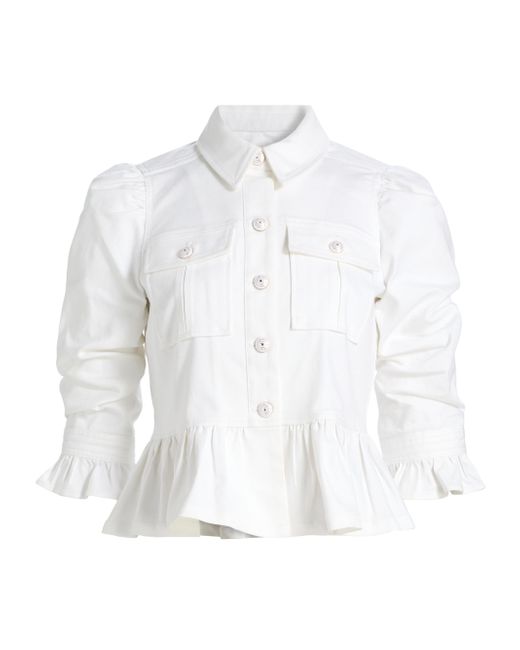 Crafted of stretch cotton-blend, the Delanie denim jacket from Cinq à Sept features scrunched-up three-quarter-length sleeves and ruffle detailing. Point collar Three-quarter-length sleeves Chest button-through flap pockets Button-front closure 72% cotton/26% polyester/2% spandex Dry clean Imported SIZE & FIT About 21.75" from shoulder to hem Model measurements: 5'10" tall Model is wearing a US size Small ABOUT THE BRAND Inspired by the radiant, magical hours between 5 and 7 PM-which is what the label's French name translates to-founder Jane Siskin designs sophisticated, feminine pieces for both workweek and the weekend. The designer's silhouettes also play with volume and eye-catching trimmings-perfect for cocktails or a special night out. Contemporary Sportswear - Denim And Bottoms > Cinq à Sept > Saks Fifth Avenue. Cinq à Sept. Color: White. Size: Medium.