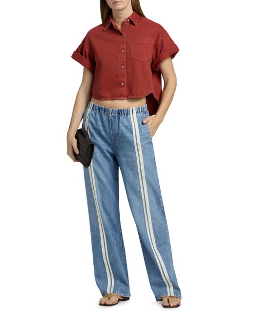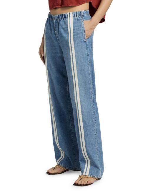 Crafted of rag & bone's featherweight cotton-blend denim, the Logan jeans are cut for a relaxed straight fit with track-inspired side striping and a comfortable elasticized waistband. Elasticized waistband Side welt pockets Back patch pockets Pulls on 64% cotton/36% lyocell Machine wash Imported SIZE & FIT Rise: about 11" Inseam: about 31" Leg opening: about 19.5" Model measurements: 5'10" tall Model is wearing a US size 4 ABOUT THE BRAND In 2002, rag & bone founder Marcus Wainwright combined his British heritage with a downtown-New York aesthetic to set the tone for the label. At the heart of the edgy-yet-laid-back brand is its focus on quality craftsmanship and attention to detail. The epitome of cool, off-duty style, it's no wonder the signature second-skin denim is favored by many. Contemporary Sportswear - Denim And Bottoms > Rag & Bone > Saks Fifth Avenue. rag & bone. Color: Eversport. Size: XS.