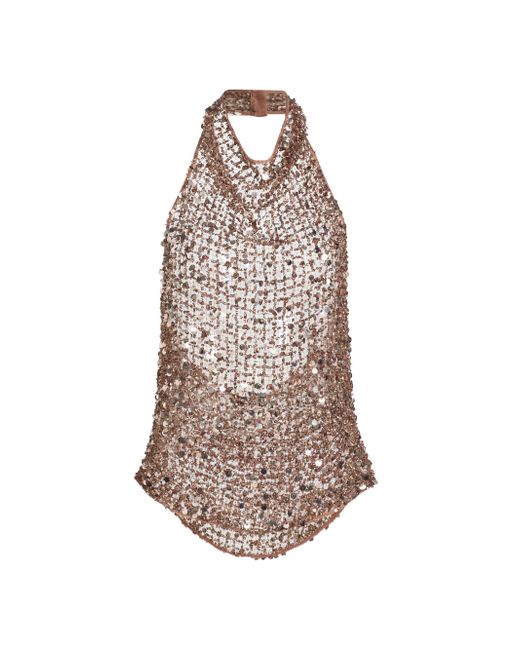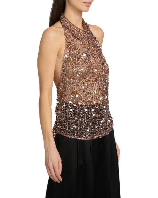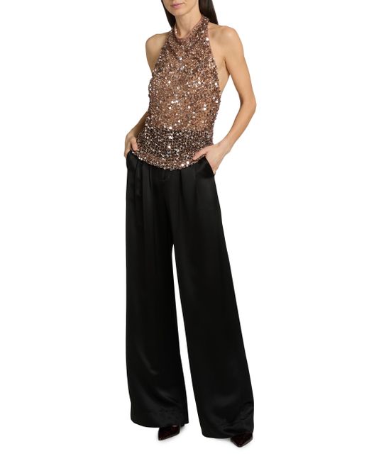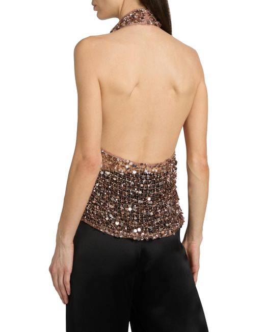 A daring fusion of athletic utility and evening glamour, LaPointe's top is crafted from a sheer, oversized net mesh entirely encrusted in tonal sequins that catch the light with every movement. This striking silhouette features a sleek halter neckline and an open back, offering a provocative, skin-baring contrast to the rich, textured shimmer. Intentionally unlined for a modern, translucent effect, it's a bold statement piece that embodies the brand's "monochromatic power" aesthetic. Halterneck Sleeveless Pulls over 100% nylon Dry clean Imported SIZE & FIT Model measurements: 5'10" tall Model is wearing a US size 4. Designer Lifestyle - Designer Lifestyle Sport > Lapointe > Saks Fifth Avenue. LaPointe. Color: Cinder. Size: 0.