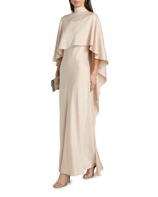 Crafted of crepe satin, the Abigal gown from Ungaro is styled in a column bias-cut silhouette with a high neckline and a draped cape. Mock neck Capelet sleeves Back button closure 82% triacetate/18% polyester Lining: 100% polyester Dry clean Imported SIZE & FIT About 48" from shoulder to hem Bust: about 34" Waist: about 34" Model measurements: 5'10" tall Model is wearing a US size Small Please note: Compared to the Brand's Size Guide, this style measures true to size. Modern Collections - Branded Separates > Ungaro > Saks Fifth Avenue. Ungaro. Color: Antique. Size: XS.