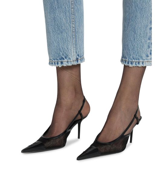 Transparent slingback pumps with a stiletto heel and pointed leather-cap toe stitched with the Cassander. Leather sole Round Saint Laurent-engraved metal plaque on the insole Elasticized slingback strap Heel height: 7.5 cm / 3 inches 70% polyamide, 25% calfskin, 5% lambskin Made in Italy. Lsd Handbags - Saint Laurent > Saint Laurent > Saks Fifth Avenue. Saint Laurent. Color: Black. Size: 6.5.