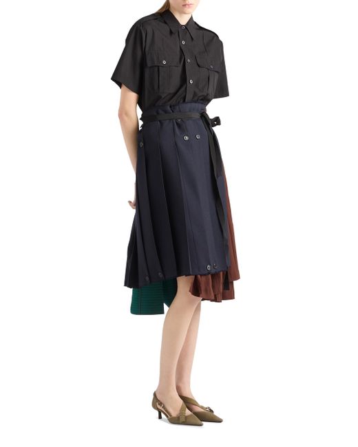Gathered silhouette Unlined garment Back closure with buttons and ribbon Stitching detail Asymmetrical, wraparound design The garment is formed by panels of different fabrics joined along vertical lines Grosgrain belt 100% fleece wool, 48% acetate, 52% viscose, 100% cotton Imported. Lsd Rtw - Prada Rtw > Prada > Saks Fifth Avenue. Prada. Color: Blue. Size: 0.