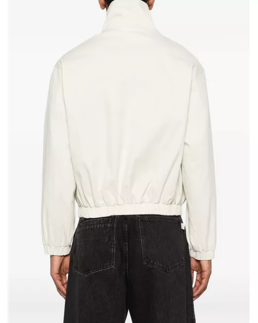 light beige front zip fastening high neck two chest flap pockets long sleeves elasticated hem