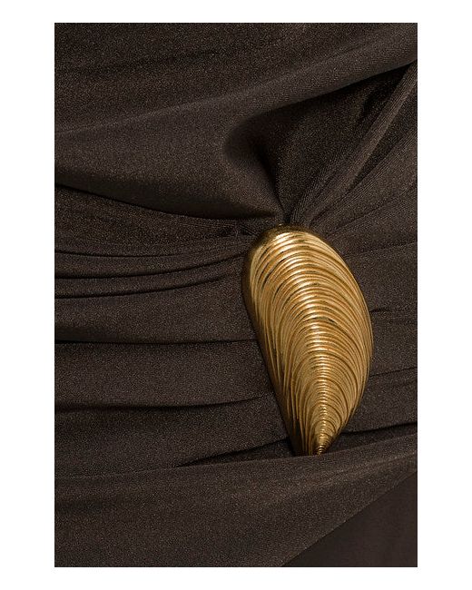 SPRING 2026 WOMEN'S COLLECTION The Lorena Shell Strapless One Piece in Chocolate. Crafted in a smooth stretch fabric, this sleeveless one-piece offers gentle structure with effortless ease. Metal shell-shaped detail at the waist defines the silhouette, creating a sculpted, flattering shape. SIMKHAI Women's Lorena Shell Strapless One Piece Swimsuit in Chocolate, Size XS