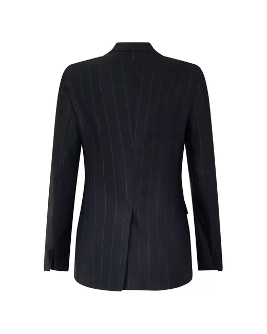 black pinstripe peaked lapels one-button fastening front flap pockets long sleeves