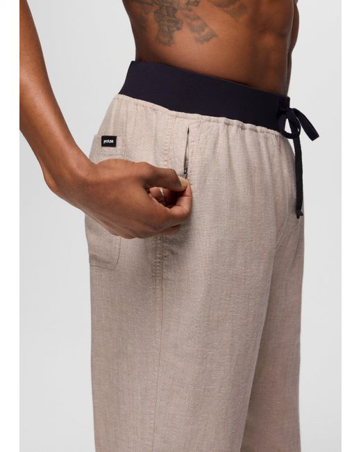 An ever so comfortable update to our Vaha pull-on pant featuring a hemp-blend and standard-straight fit. We’ve taken your favorite Vaha Pant and made it even more comfortable with an updated knit elastic waistband and a hidden secure zipper pocket. Designed for low-key flows and rest days, The Vaha Balance Pant is made with a stretch woven from a natural hemp blend that’s breathable and naturally odor reducing. Available in multiple inseams for the perfect fit. | Mens prAna Vaha Balance Pant in Beige / Khaki, Size Large