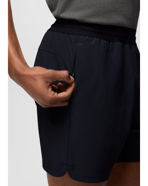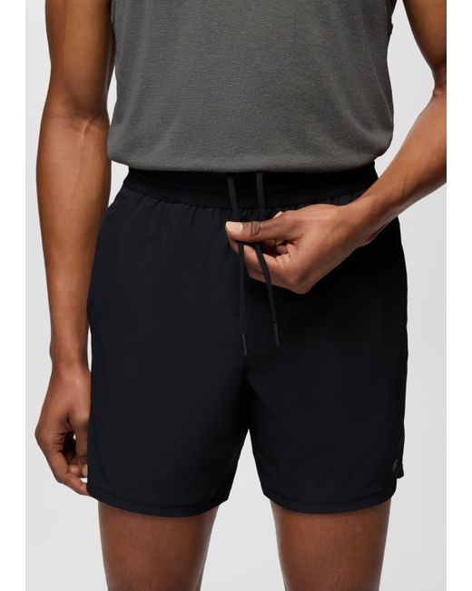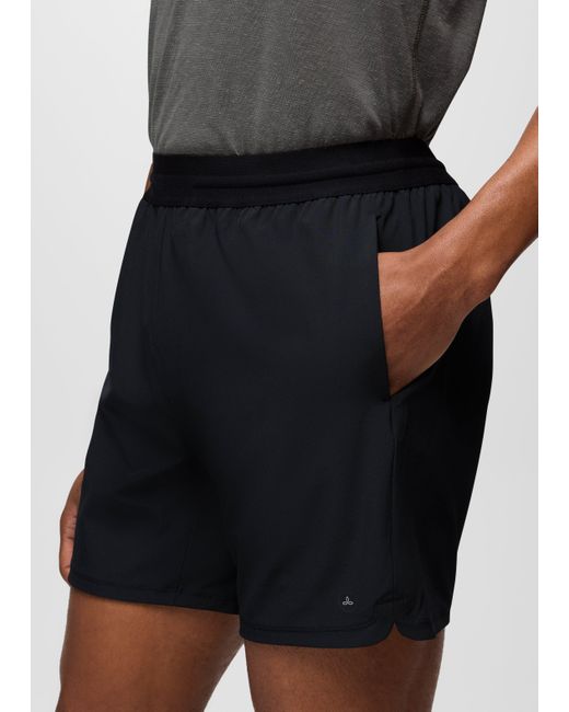 Lightweight performance shorts in a quick-drying recycled polyester weave. Hot yoga and mid-afternoon hikes are no match for our Intrinsic Short. The recycled polyester weave is lightweight, quick to dry, and outfitted with UPF 50+ for a little extra coverage in the sun. We designed them with a standard fit, stretchy waistband, and adjustable drawstring for a custom fit that’s made to move. Drop-in pockets and a secure side pocket offer plenty of storage to keep your phone and keys protected. | Mens prAna Intrinsic Short in Black, Size XXL