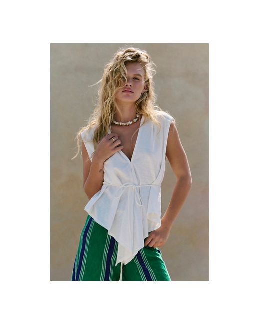 Defined by a cascading pointed hem and cinched waist, this stunning top from free-est is made to move with you in a slubby cotton fabrication, plunging neckline, and adjustable tie detail. * Sleeveless * Full back coverage * Gathering at waist and hem * Cotton fabrication Nixie Cotton Top by free-est at Free People in Clean Ivory, Size: XS
