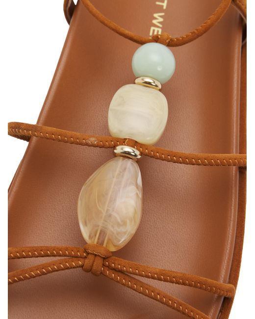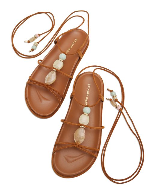 These Majorca sandals from Stuart Weitzman are crafted of suede and feature a beaded design with a lace-up wrap tie closure. Open toe Ankle-wrap closure Suede upper Leather lining TPU sole Made in Spain ABOUT THE BRAND Designer Stuart Weitzman started his career designing for his father's shoe company, before launching his own brand in 1986. Known for his glamorous pumps and over-the-knee boots, Weitzman has also incorporated unique materials in his designs, ranging from Lucite and wallpaper to cork, vinyl and even gold. Today, the label continues to create classic, feminine silhouettes that balance both comfort and style. Women's Shoes - Stuart Weitzman W Shoes > Stuart Weitzman > Saks Fifth Avenue. Stuart Weitzman. Color: Boho Tan. Size: 6.5.